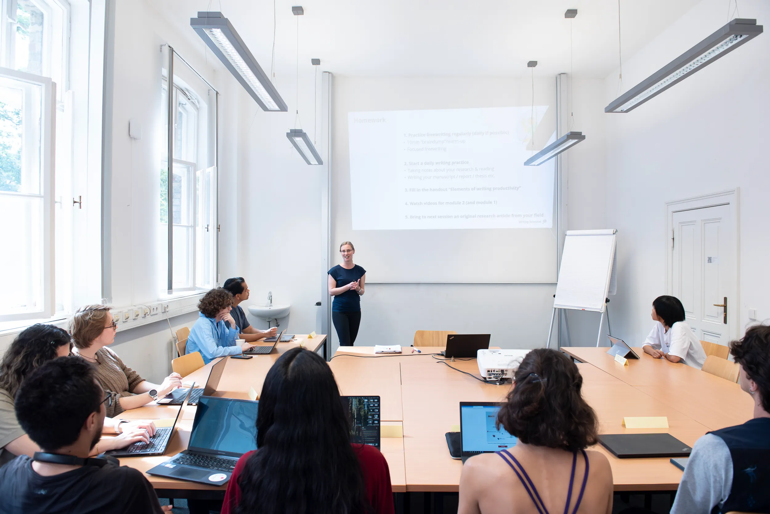 A popular version contains an in-person drafting week with daily text feedback for all ten participants. In this case, the course is carried out in collaboration with Dr. Kerstin Minnich (scientific writing trainer & editor).